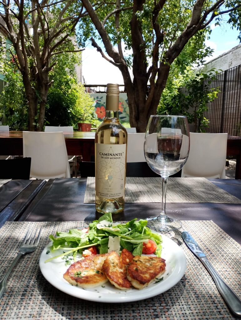 El recorrido comienza con una selección de entradas que transportan directo al Mediterráneo: pan de pita, hummus, talatturi, kupepia y, por supuesto, el clásico halloumi, ese queso de leche de cabra y oveja que se trae especialmente desde Chipre para asegurar su autenticidad. Solo con probarlo entendés por qué es el orgullo de la isla. Para su maridaje se eligió «Caminante de los Mundos», Pinot Grigio, fresco, aromático, creando un comienzo vibrante para el viaje sensorial.