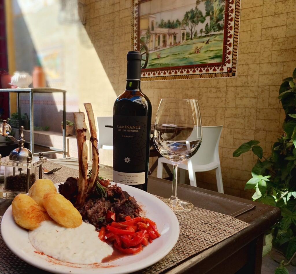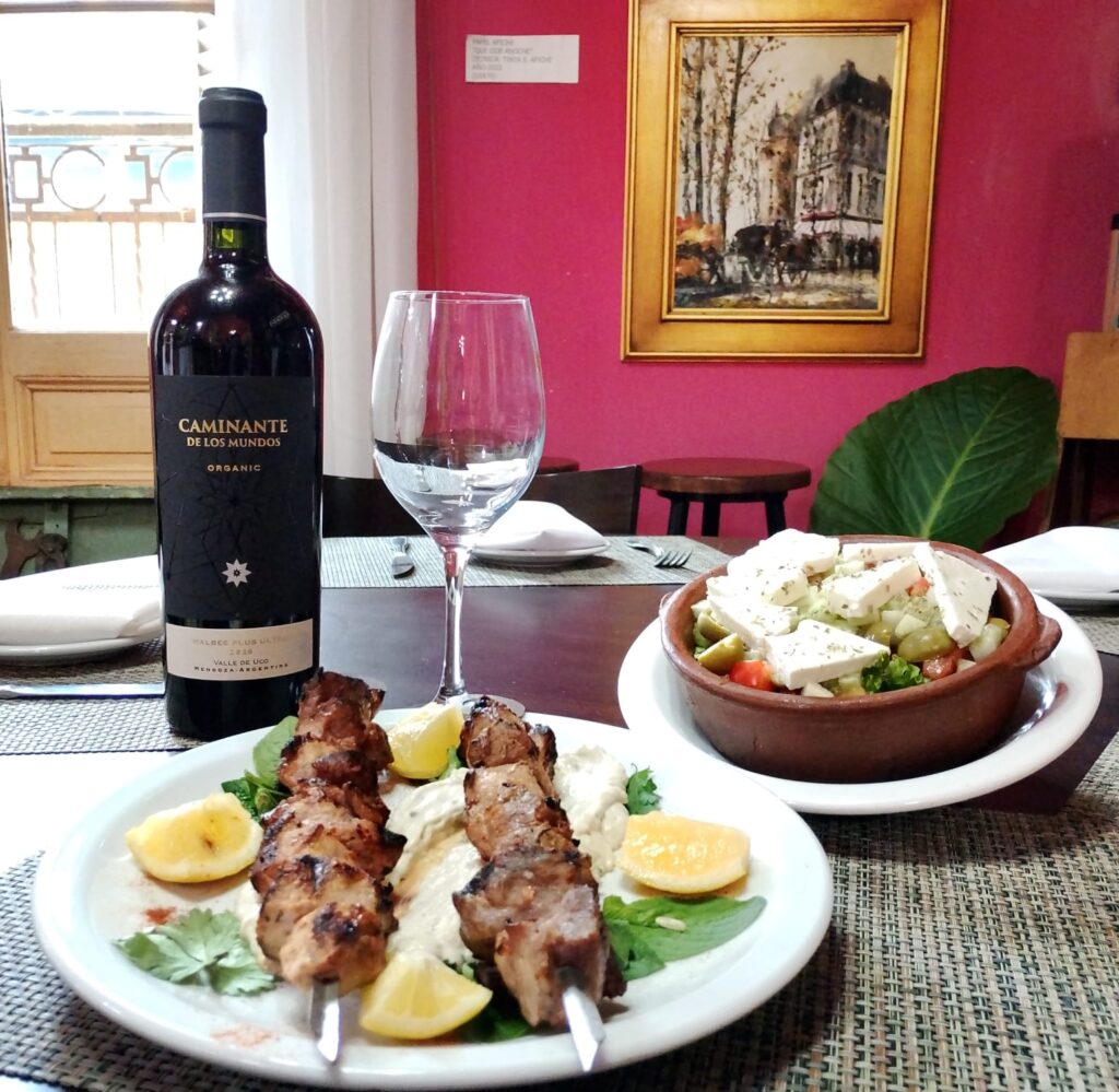 Después llegan los principales: suvlakias, musaka, kleftiko (cordero braseado con limón, ajo y papas) y unos deliciosos ravioles rellenos de halloumi, ricotta y menta. Cada plato encuentra su pareja ideal en los vinos orgánicos de Bodega Jasmine de los Mundos, logrando un maridaje que une a Mendoza con el Mediterráneo en perfecta armonía. Para esta oportunidad, «Caminante de los Mundos» Malbec Plus Ultra, seleccionado por su carácter, capaz de realzar las notas de cada plato.