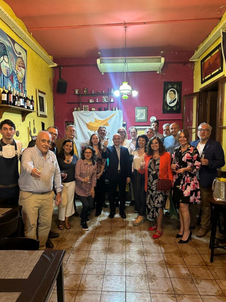 Durante la presentación del menú, el Embajador de Chipre, Stelios Georgiades, acompañó la cena con palabras que resaltaron los lazos entre ambos países. El brindis final, con Commandaría, un vino dulce ancestral chipriota, fue el toque perfecto para cerrar una noche de tradición, cultura y disfrute.